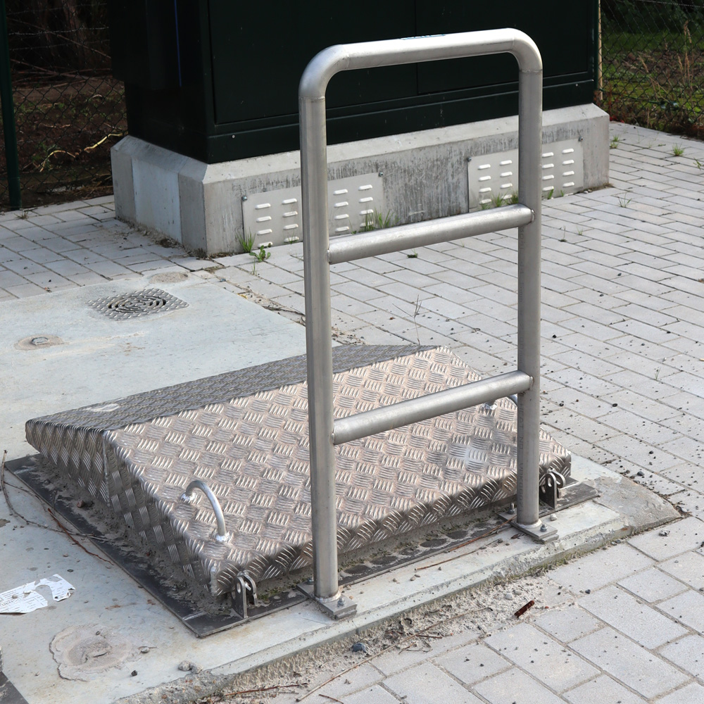 Fixed acces handle in stainless steel to step in and -out in a safe way